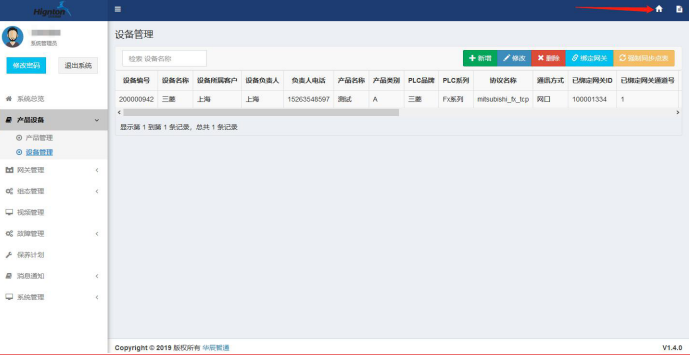 7.新增設備:選擇設備管理點擊【新增】,填寫設備信息,如下圖所示