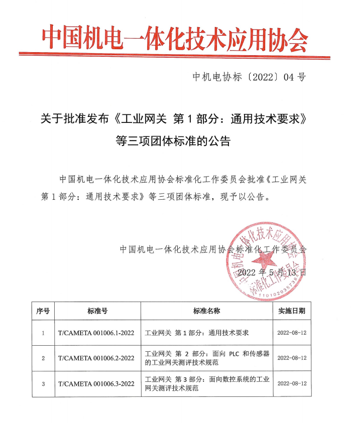 2022年5月13日,華辰智通核心參編的工業網關標準,已正式通過審批!將于2022年8月12日正式實施!