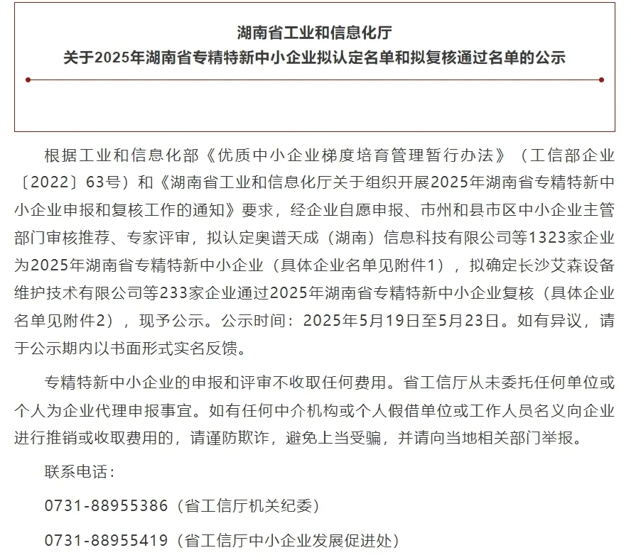近日,湖南省工信廳發(fā)布2025年度湖南省專精特新中小企業(yè)復(fù)核通過(guò)名單,湖南華辰智通科技有限公司憑借在工業(yè)互聯(lián)網(wǎng)領(lǐng)域卓越的技術(shù)創(chuàng)新能力、穩(wěn)健的市場(chǎng)表現(xiàn)以及突出的行業(yè)貢獻(xiàn),成功通過(guò)”專精特新”企業(yè)復(fù)核認(rèn)定!這一榮譽(yù)不僅是對(duì)湖南華辰智通過(guò)往努力與成果的高度認(rèn)可,更是公司發(fā)展歷程中的又一重要里程碑。