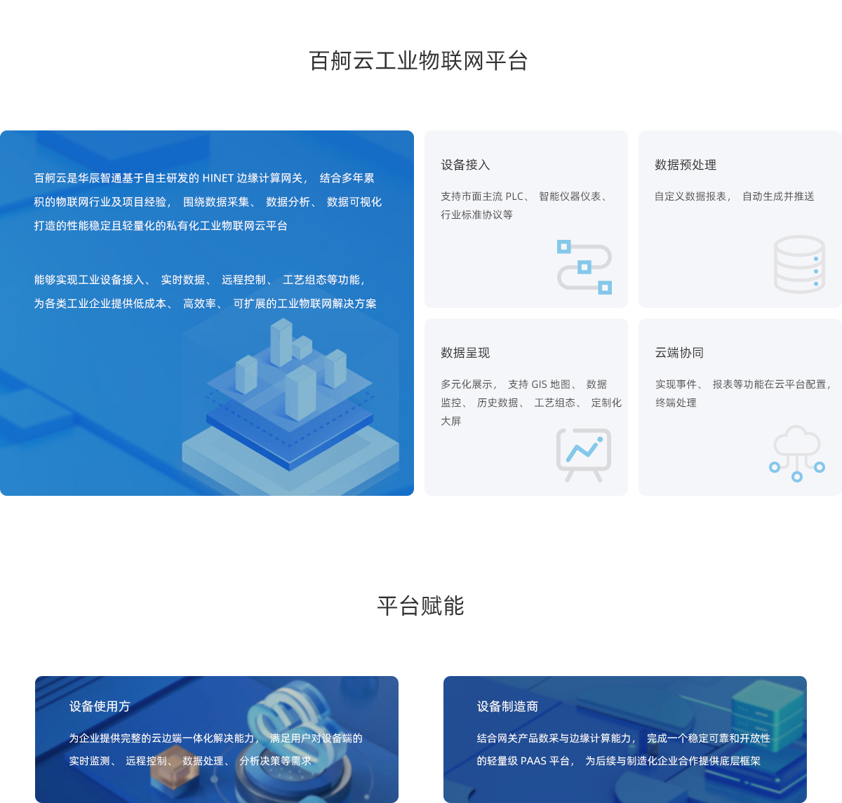 百舸云是華辰智通基于自主研發的HINET邊緣計算網關,結合多年累積的物聯網行業及項目經驗,圍繞數據采集、數據分析、數據可視化打造的性能穩定且輕量化的私有化工業物聯網云平臺,能夠實現工業設備接入、實時數據、遠程控制、工藝組態等功能,為各類工業企業提供低成本、高效率、可擴展的工業物聯網解決方案。