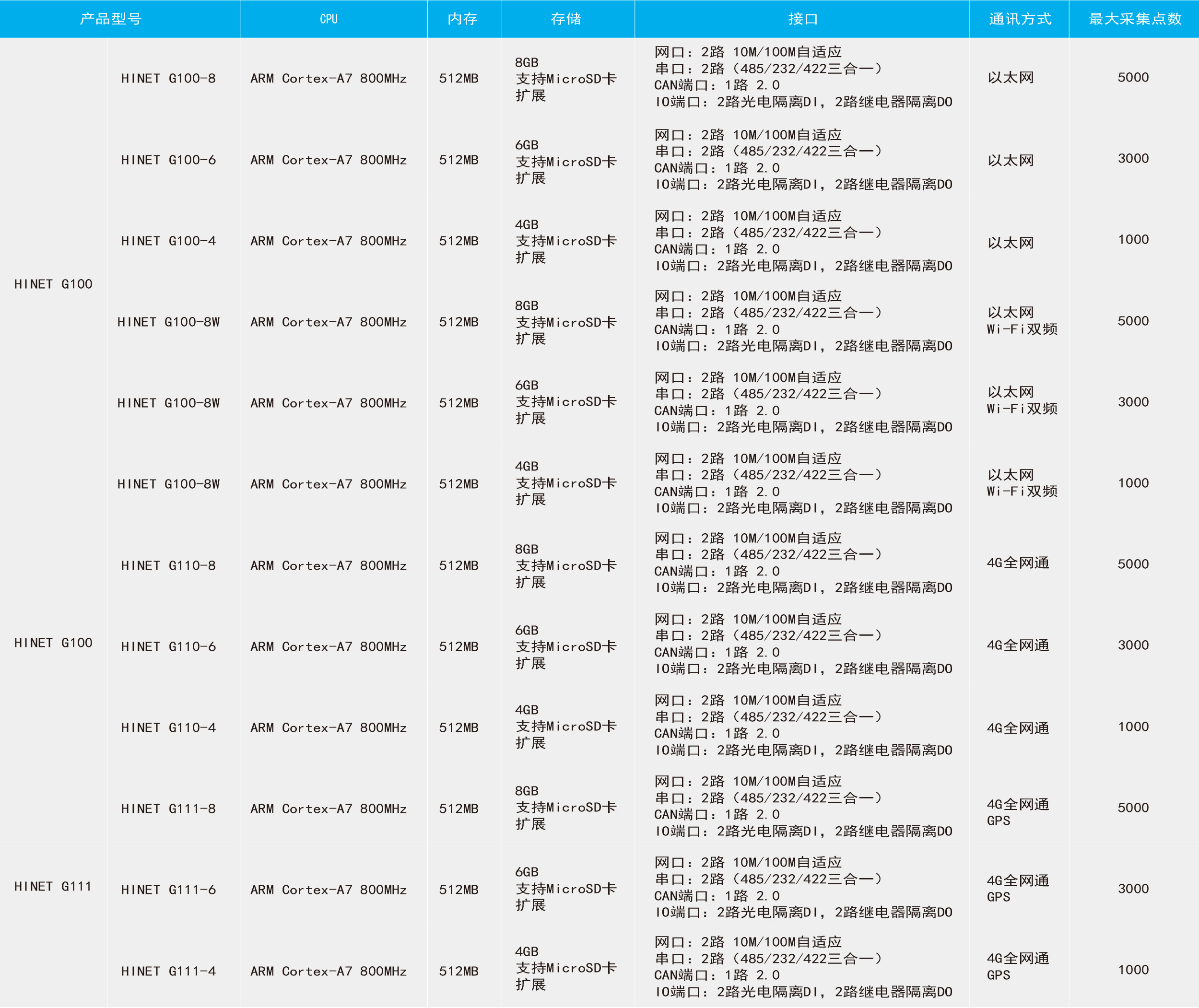 HINET·G系列邊緣計(jì)算網(wǎng)關(guān),是華辰智通最新推出的—款面向工業(yè)現(xiàn)場(chǎng)設(shè)備接入、數(shù)據(jù)采集、設(shè)備監(jiān)控的工業(yè)級(jí)邊緣計(jì)算網(wǎng)關(guān)。采用ARM Cortex-A7 800MHz高性能CPU,擁有以太網(wǎng)、串口、CAN口、IO口等豐富的接口,支持以太網(wǎng)、2G/3G/4G網(wǎng)絡(luò)接入方式,可滿(mǎn)足絕大部分工業(yè)應(yīng)用場(chǎng)景及工業(yè)設(shè)備接入。