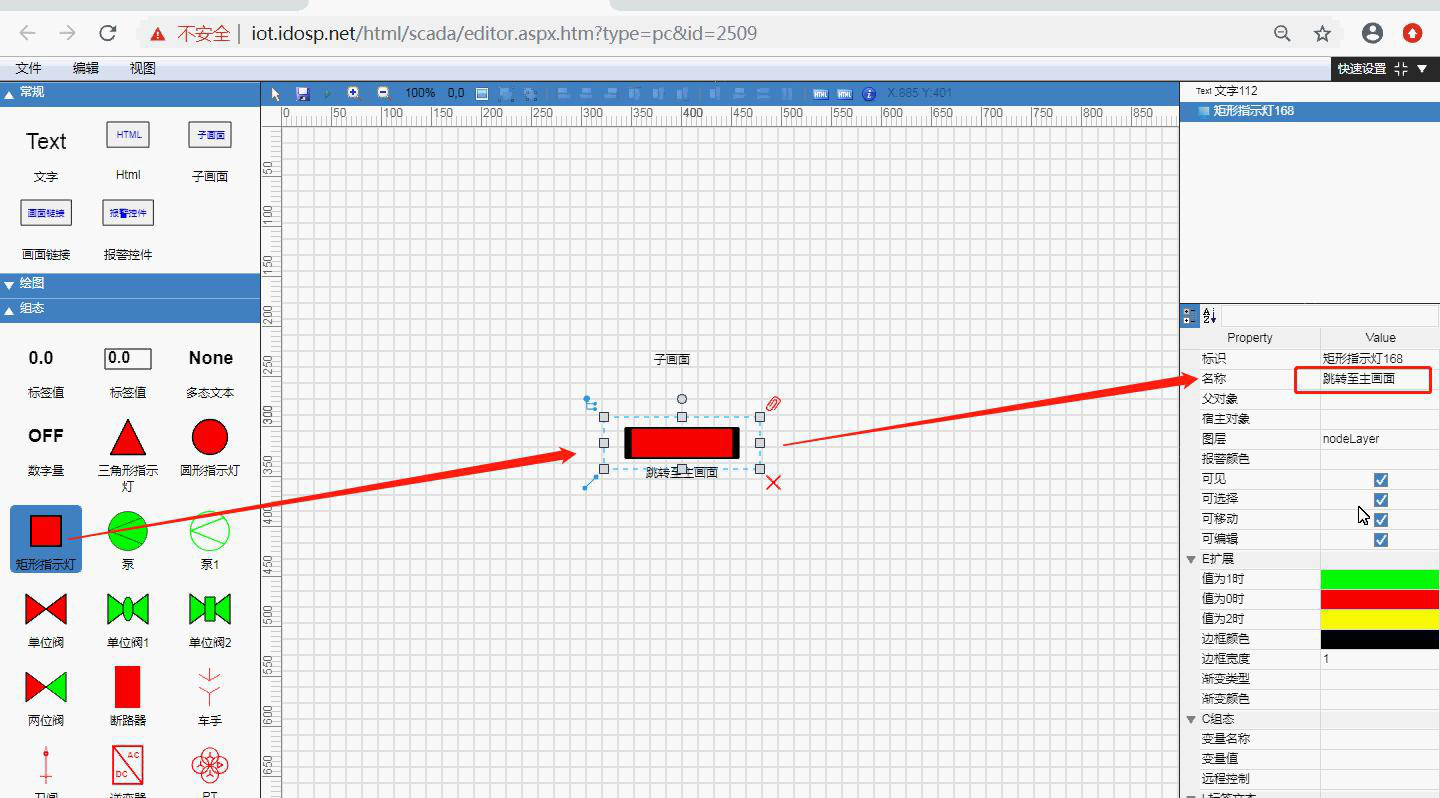 思普云設備組態子畫面跳轉使用教程說明,另一方面通過動畫、曲線等方式將現場數據以動態體現在圖形界面,操作圖形界面即可控制現場設備。